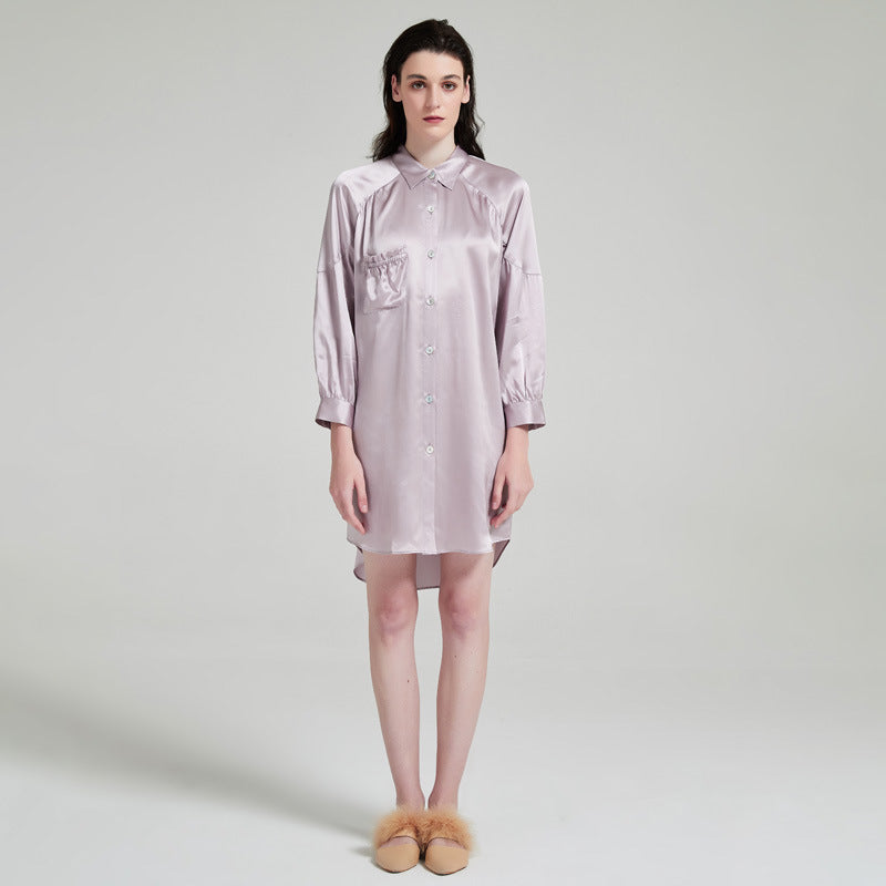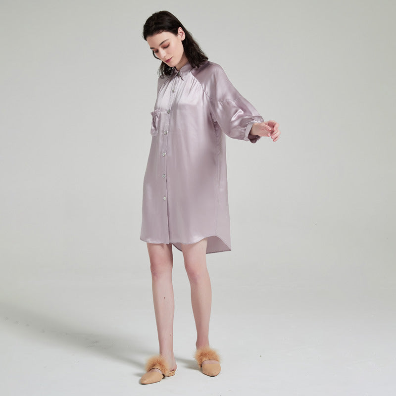 ✔ Item Type: Silk Dress – Button-Down Shirt Style with Chest Detail, versatile for lounging or casual wear